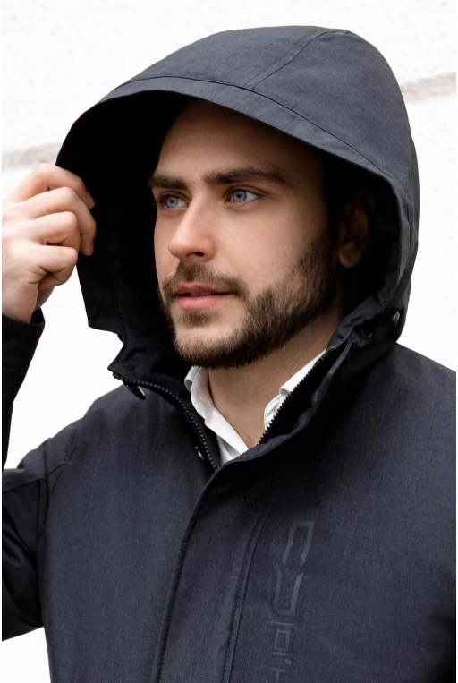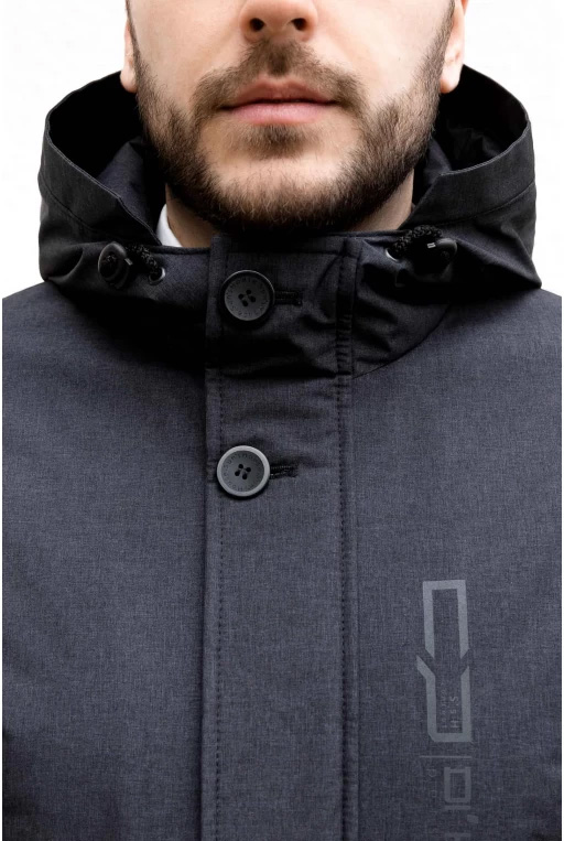 Куртка-парка, демісезонна/для м'якої зими, сучасного міського стилю з паровідводним шлюзом за технологією Polar Fleece на спинці виробу, з теплим капюшоном та закритою горловиною, виготовлена з м'якої і приємної на дотик мембранної тканини POLYCOTTON та утеплювачем Hollowsoft 100 (до -4С), а також: