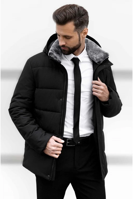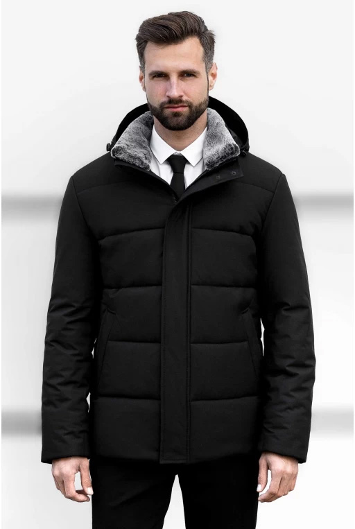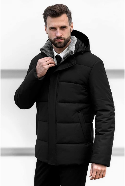 Куртка чоловіча зимова з капюшоном, чорна - фото 1