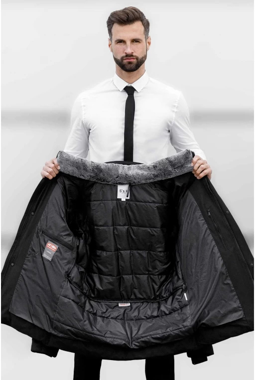 Куртка чоловіча зимова з капюшоном, чорна - фото 3