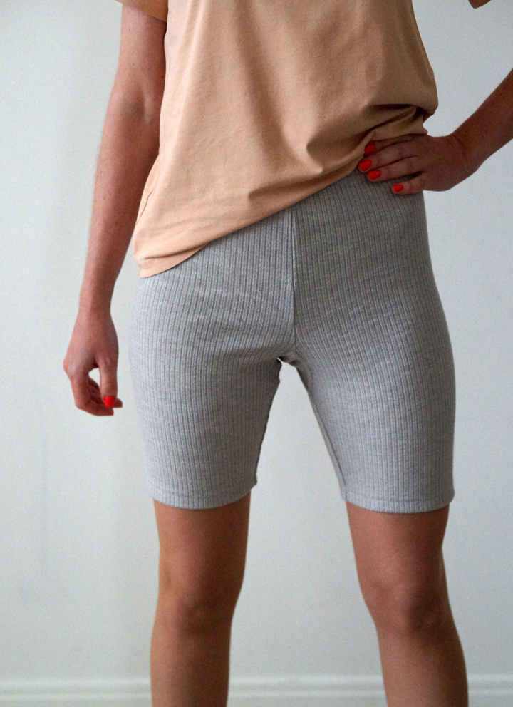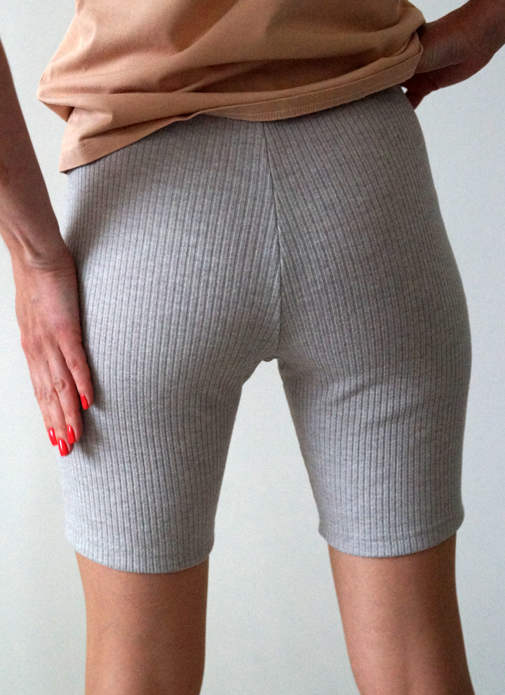 Трикотажні в рубчик зимові шорти-велосипедки з вовною (утеплені панталони), в кольорі сірий меланж з італійського преміального матеріалу.