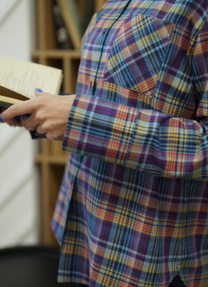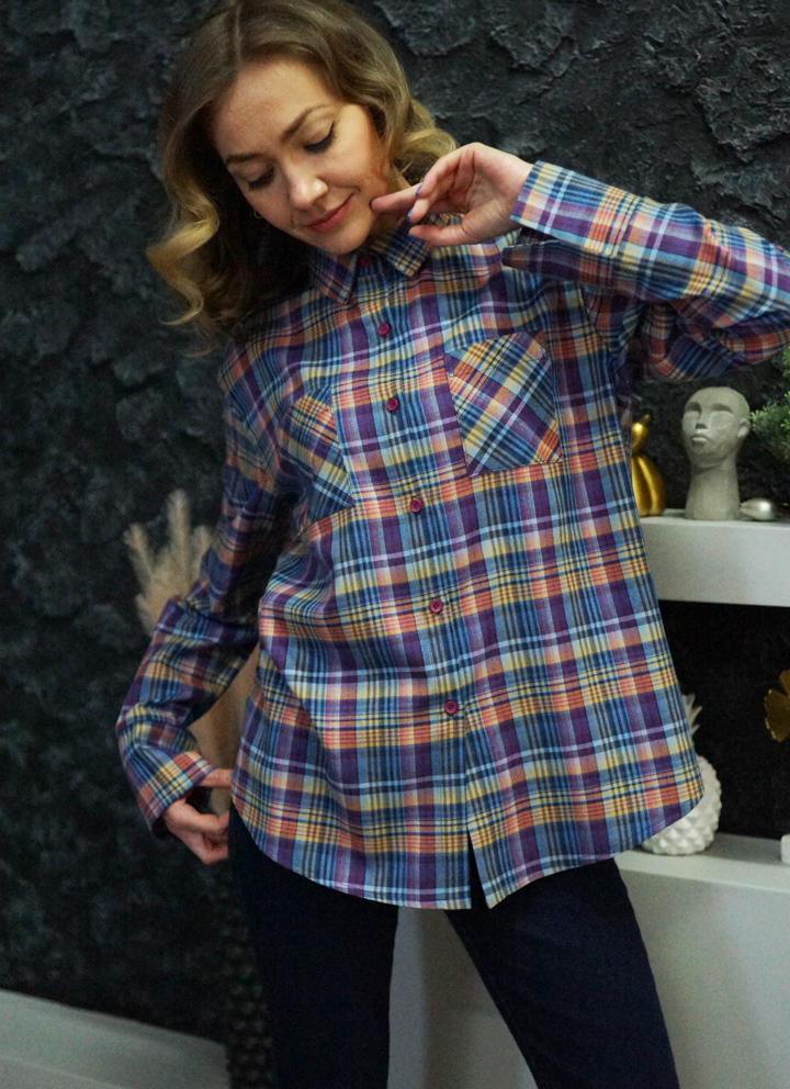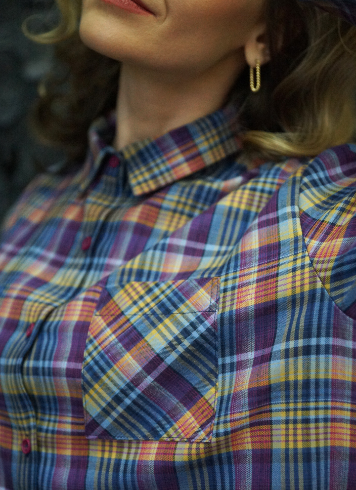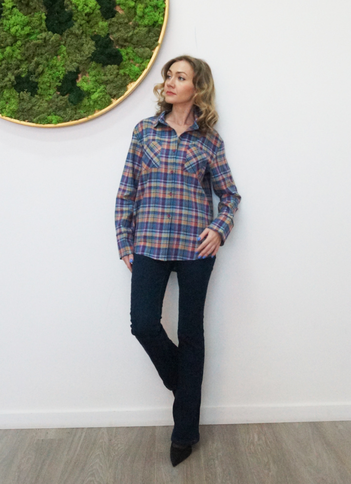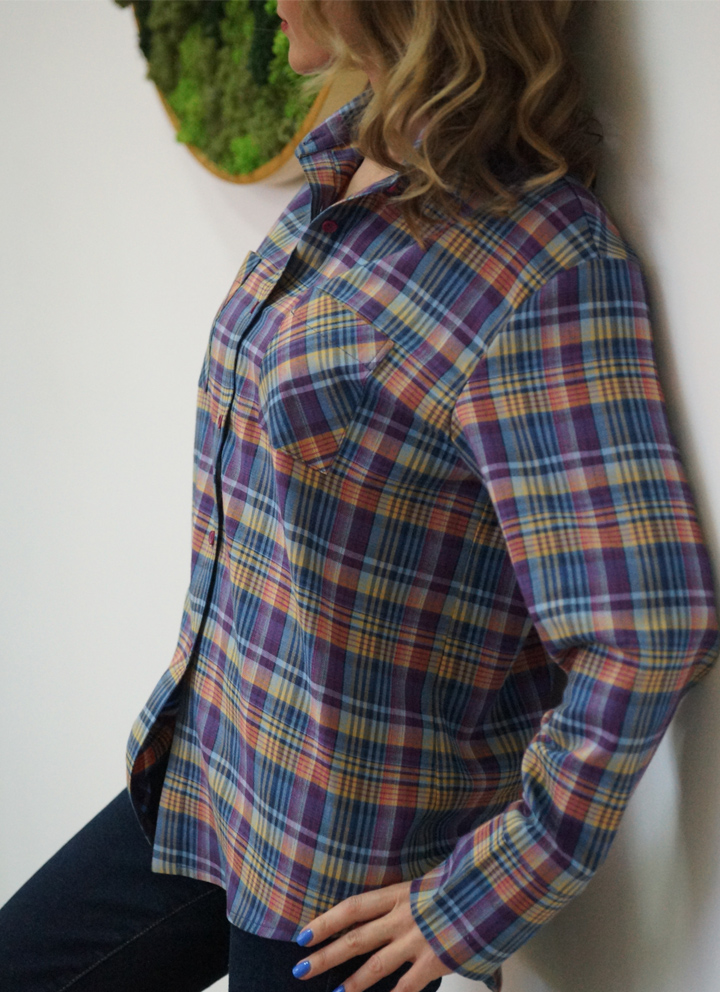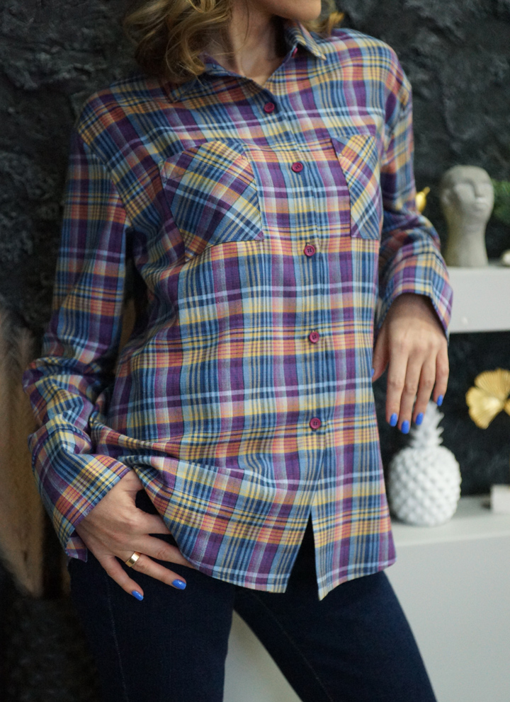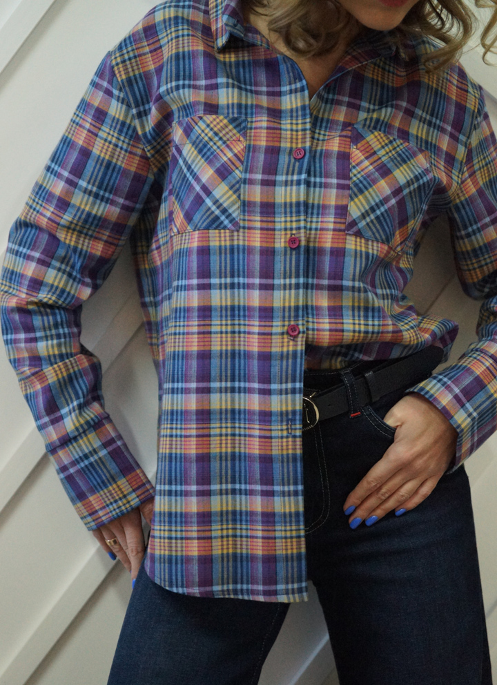 Жіноча сорочка з весняної колекції Spring Casual з високоякісної італійської бавовни в приголомшливу бузково-жовту клітинку.