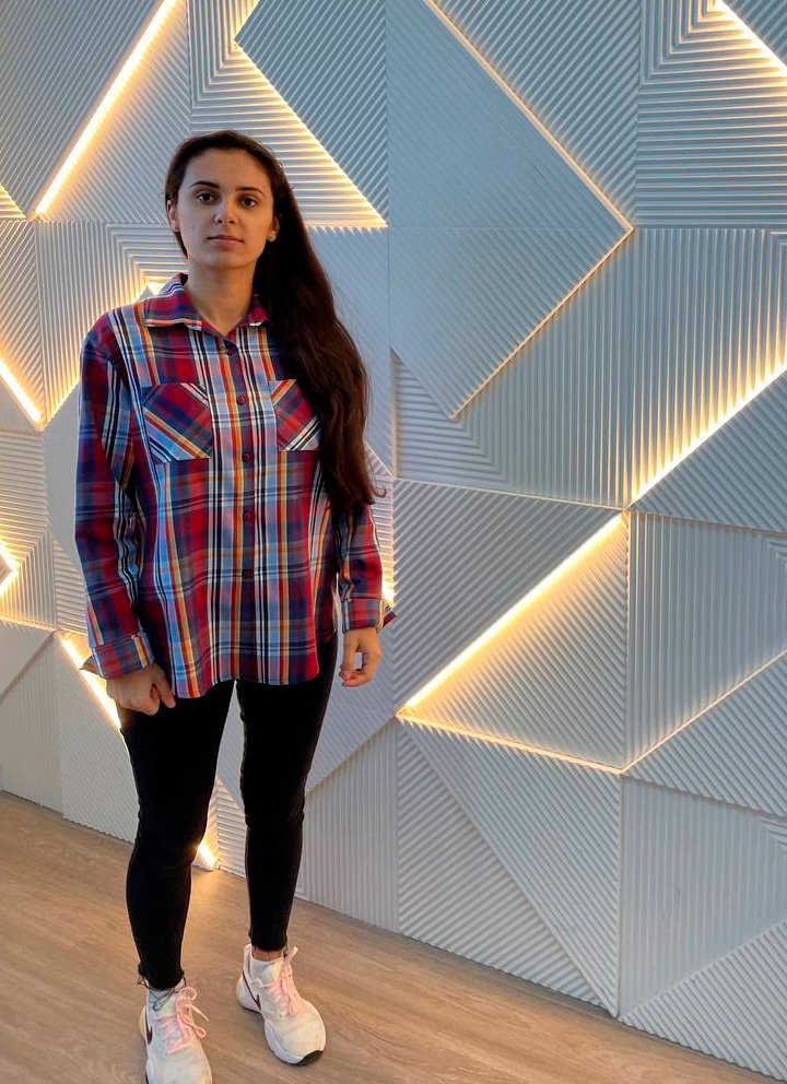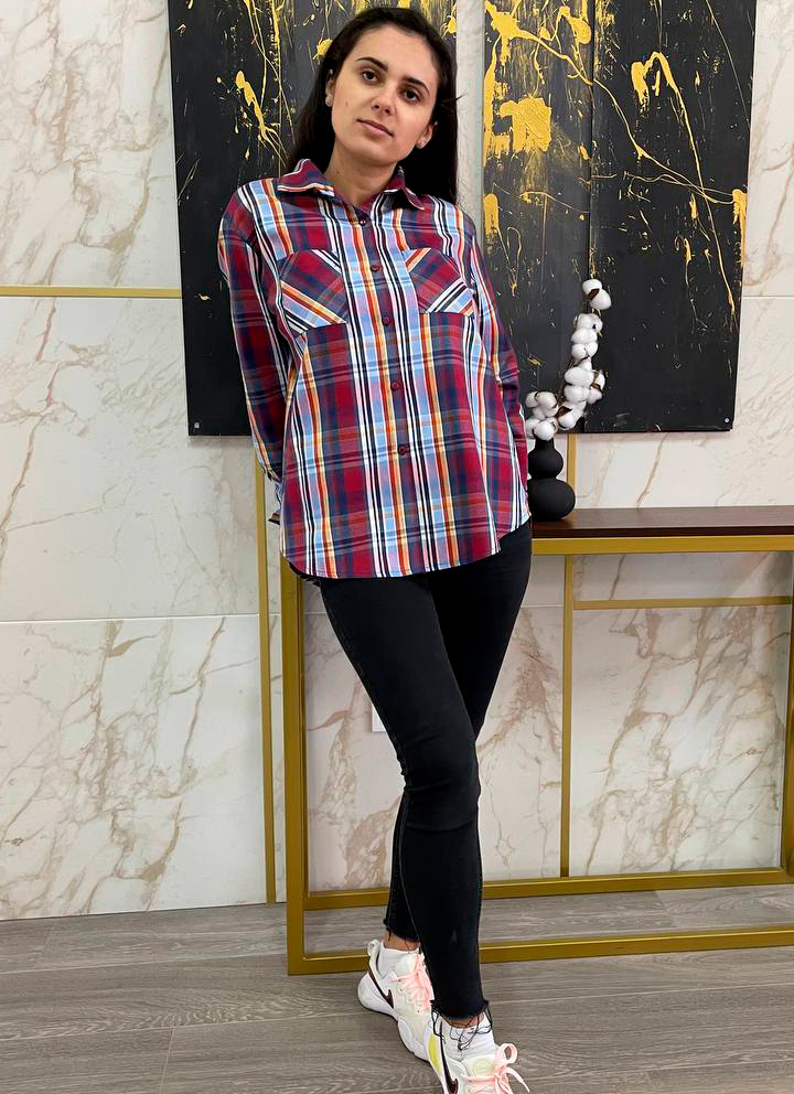 Жіноча сорочка з весняної колекції Spring Casual з високоякісної італійської бавовни в приголомшливу бордово-синю клітинку.