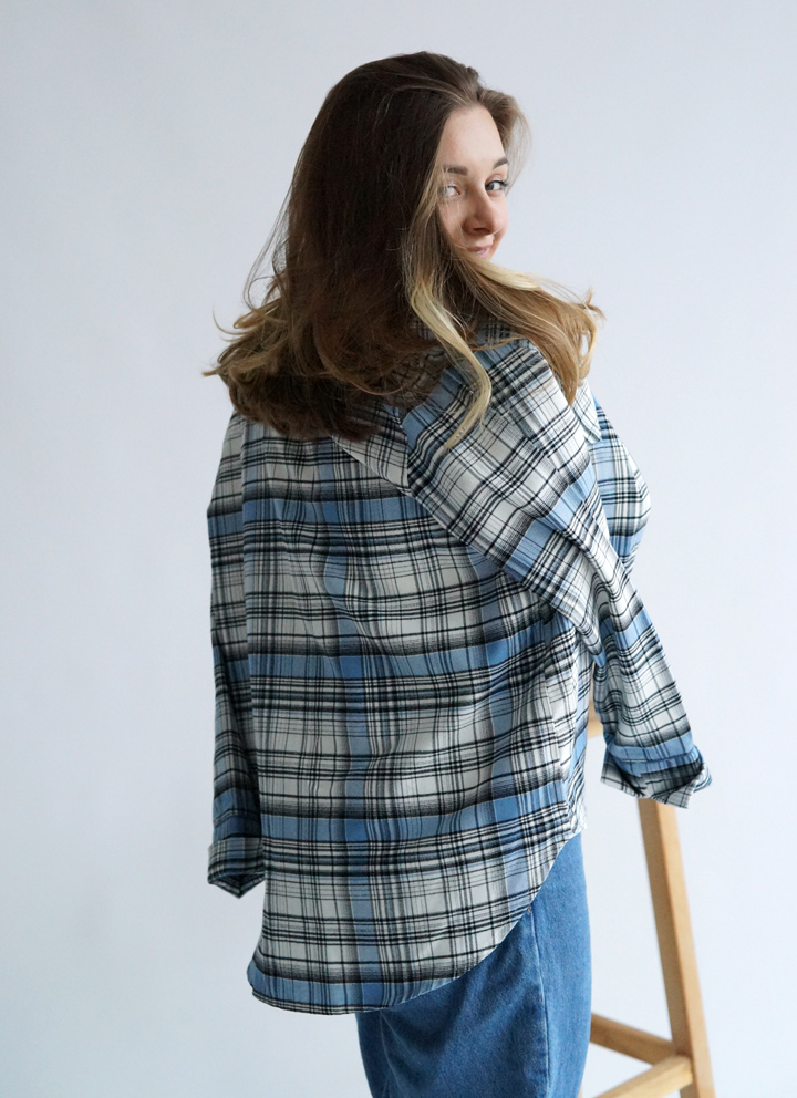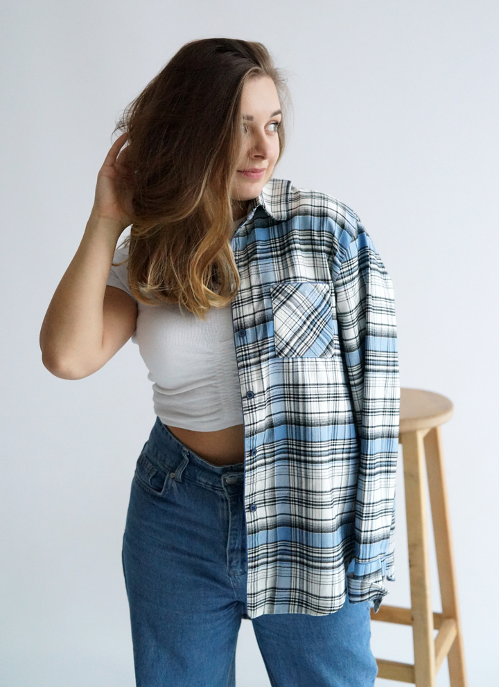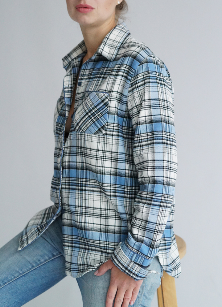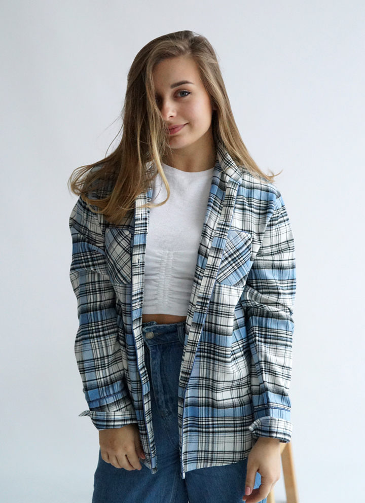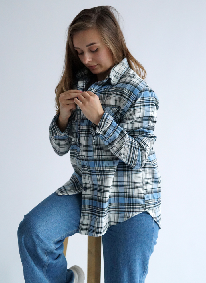 Сорочка жіноча з італійської фланелі в синьо-білу клітинку.
