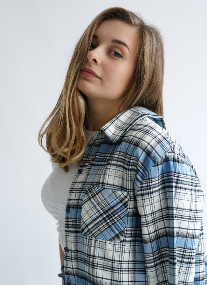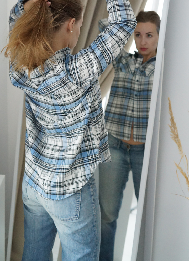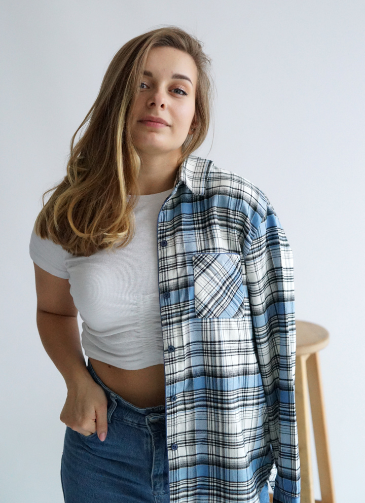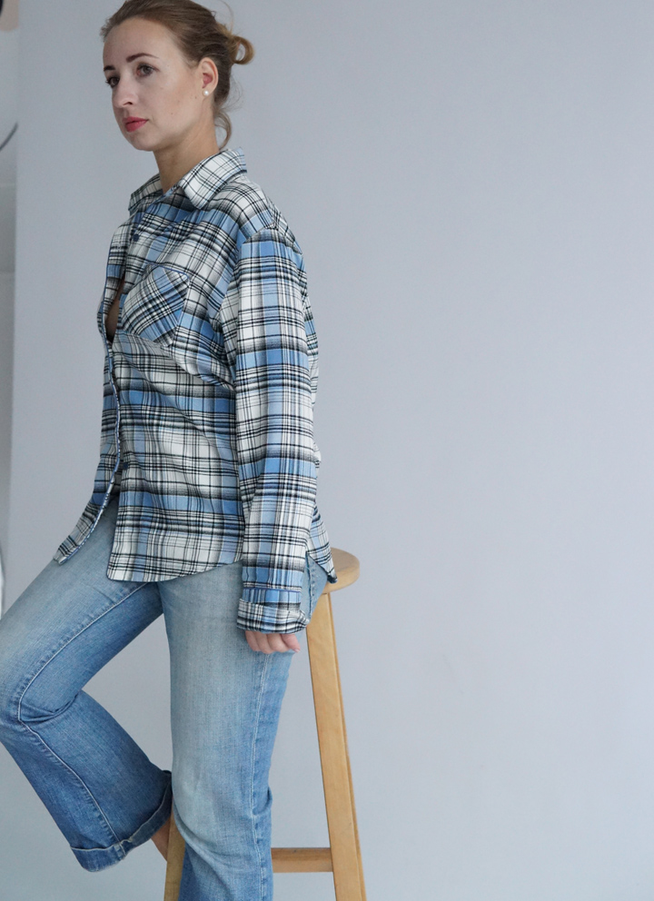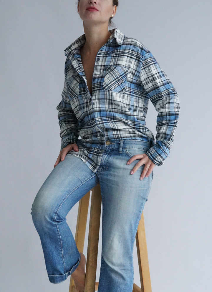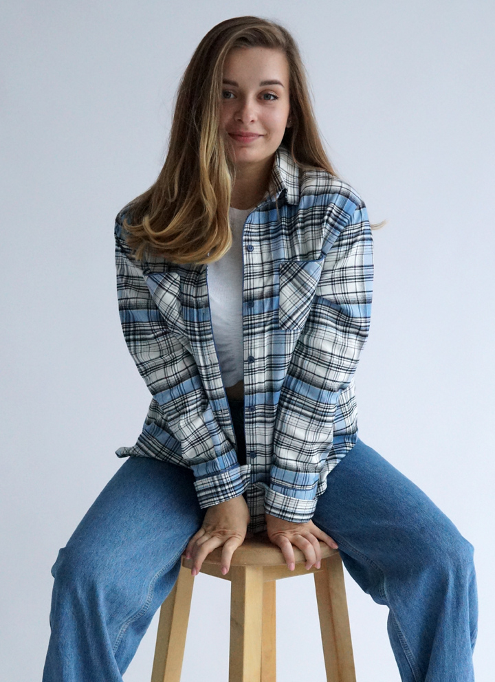 Сорочка жіноча з італійської фланелі в синьо-білу клітинку.